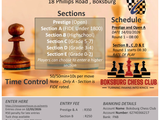 Chess Power House Boksburg Open 2026