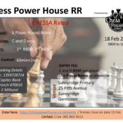 Format: 6 Player Round Robins. Sections: A and B. Prizes: Cash Prizes TBA Time Control: 60/60min+30sec per move Entry Closes:
