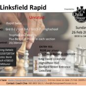 Format: 20/20min Rapid. Sections: Grd 0-2 / Grd 3-4 / Grd 5-7 High School. Prizes: Trophies and Medals /